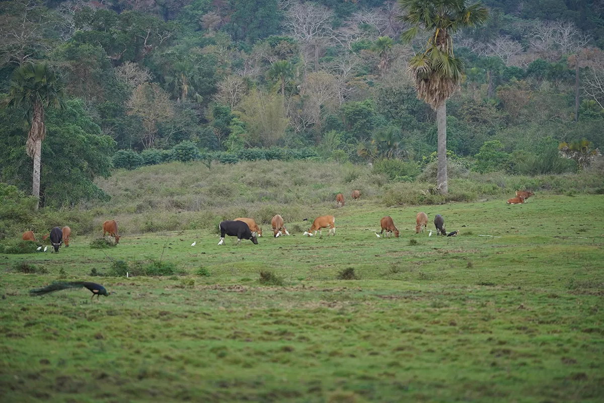 - Sadengan Savannah: Known as the “Little Africa” of Banyuwangi, Sadengan offers sweeping grasslands where wild animals roam freely. Javan banteng, deer, macaques, and even peafowl can be seen grazing or strutting in the open. For photographers, the savanna provides stunning natural backdrops and a chance to capture wildlife in its purest setting.